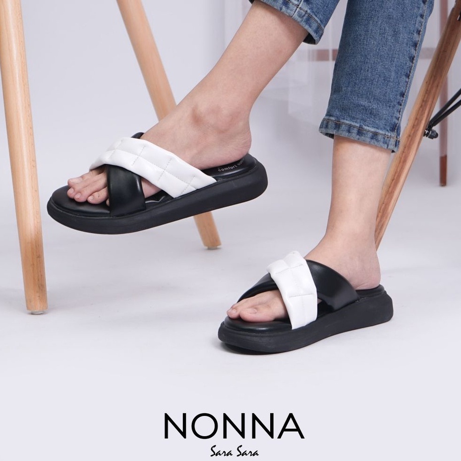 Sepatu Wanita > Sandal > Sandal Flat > Sara Sara NONNA Sandal Slop Wanita Kekinian Sendal Flatform Cewek Sol Tebal Model Ban Dua Silang Variasi Terbaru