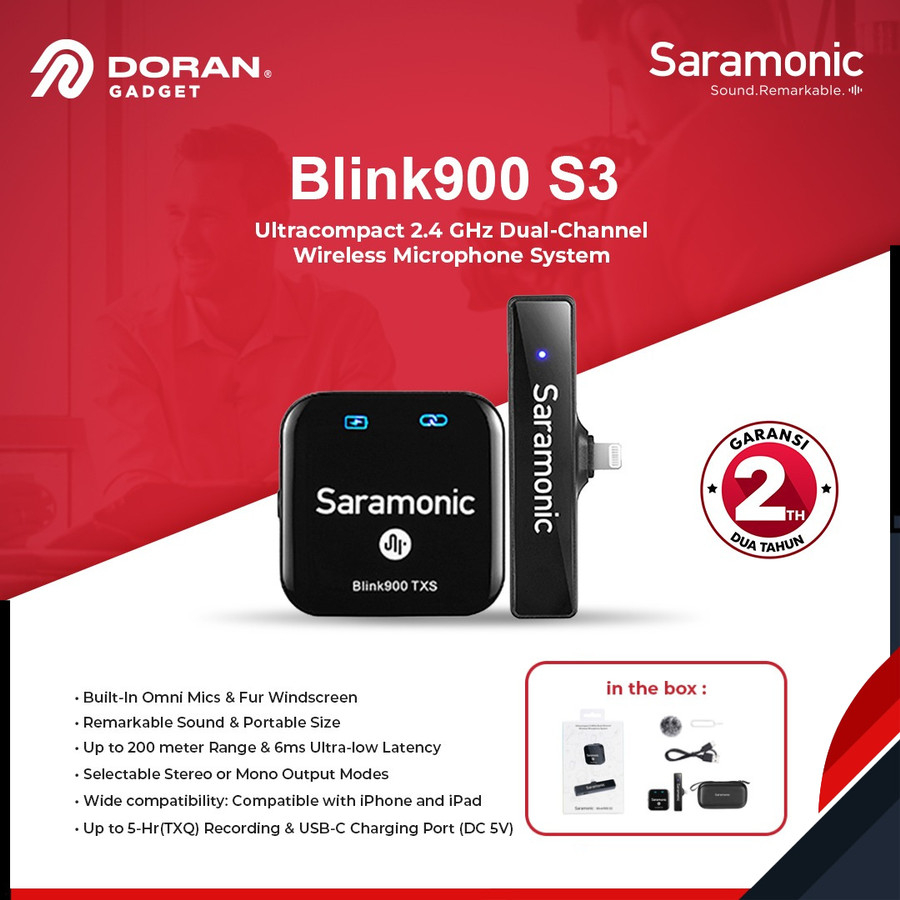 Detail Saramonic Blink 900 S3 Lightning Wireless Microphone for Iphone iOS - Garansi Resmi 2 Tahun
