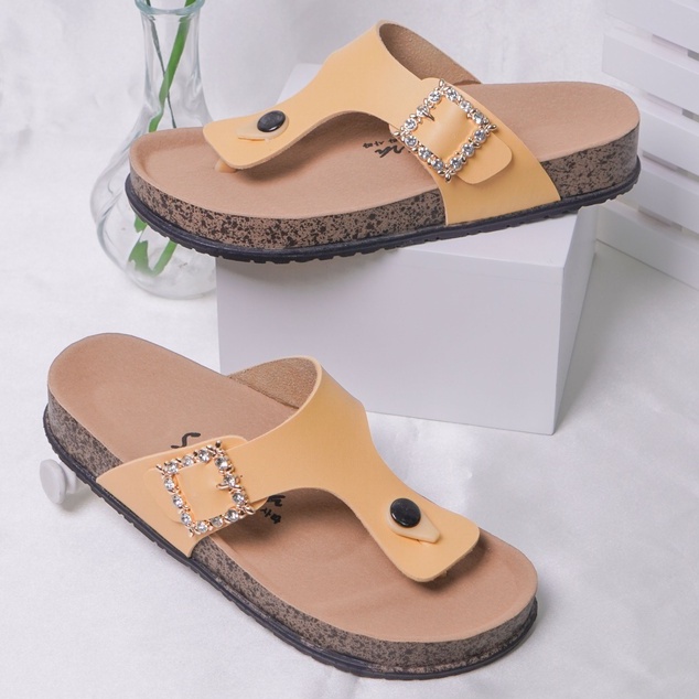 Sepatu Wanita > Sandal > Sandal Jepit > SARASARA YUK - AUDY Sandal Wanita Jepit Casual Size 36 - 41 Model Birken Sol Puyuh Sara Sara Sendal Cewek Rumahan Bahan Kulit Santai Strap Gesper Empuk 37 38 39 Warna Yellow Kuning Japit Anti Slip Premium Original Terbaru Shoes ORI Mall Official Store