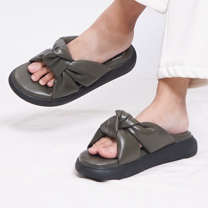 SARASARA YUK - DIVA Sandal Wanita Wedges Sendal Cewek Platform Hak Tinggi 3 cm Model Silang Unik Lucu Size 36 37 38 39 40 Pergi Jalan Casual Santai Rumah Slop Warna Green Hijau Selop Premium Original Kekinian Terbaru Shoes ORI Mall Official Store