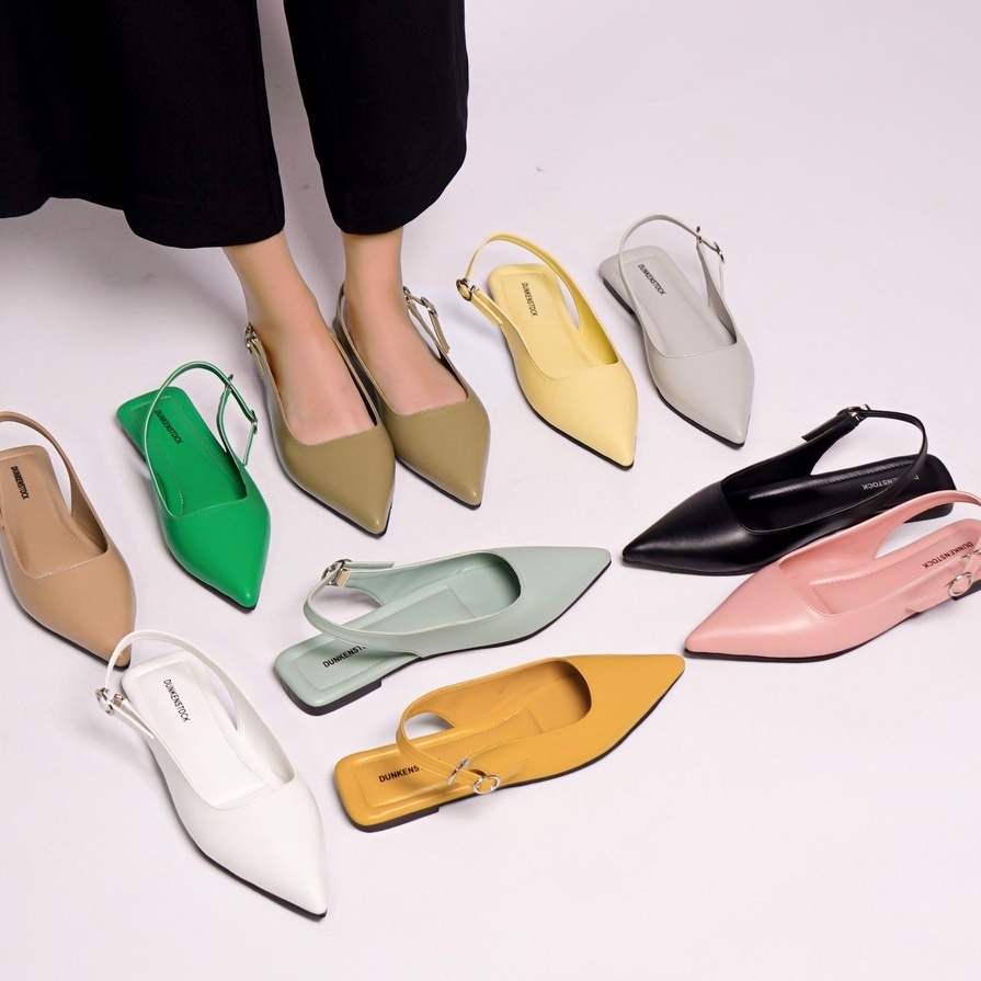 SARASARA YUK - Dunkenstock MIKHA Sepatu Sandal Wanita Flatshoes 1cm Size 36 - 40 Tidak Licin Flat Shoes untuk Kerja Kantoran Kuliah Casual Belleza 37 38 39 Warna Black Hitam Sara Sara Kekinian Premium Terbaru Shoes Ori Original Mall Official Store
