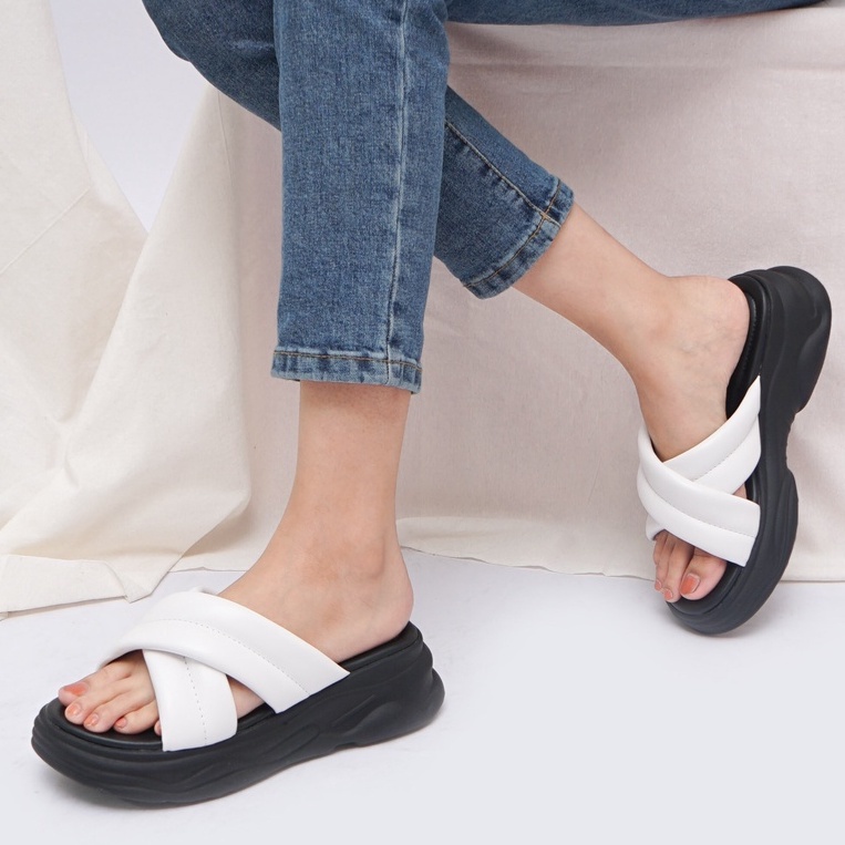 SARASARA YUK - NAGITA Sandal Wanita Wedges Silang Tinggi 5cm Size 36 - 40 Casual Sendal Cewek Platform 37 38 39 untuk Jalan Pergi Santai Slop Warna Putih White Rumahan Selop Rumah Premium Original Sara Sara Kekinian Terbaru Shoes ORI Mall Official Store