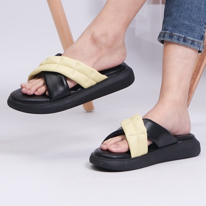 Sepatu Wanita > Wedges > SARASARA YUK - NONNA Sandal Wanita Wedges Silang Tinggi 3cm Size 36 - 40 Casual Sendal Cewek Platform 37 38 39 untuk Jalan Pergi Santai Slop Warna Blue Biru Selop Premium Original Sara Sara Kekinian Terbaru Shoes ORI Mall Official Store