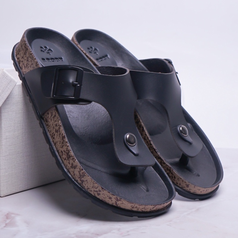 SARASARA YUK - Sandal Pria Jepit Casual Model Puyuh Birken BRODY BOXER Sendal Laki laki Japit Gesper dua 2 Kasual Sol Kulit Rumahan Size Ukuran 38 39 40 41 42 43 Ori Original SARA SARA Cowok Warna Black Hitam Terbaru Premium Original Mall Official Store
