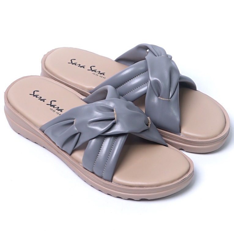 SARASARA YUK - Sandal Wanita Wedges SARA SARA HALLE Sendal Cewek Platform Wegdes Hak Tinggi 4cm Model Silang 2 Size 35 36 37 38 39 40 Pergi Jalan Santai Rumah Slop Warna Grey Abu Selop Premium Kekinian Terbaru Shoes ORI Mall Official Store