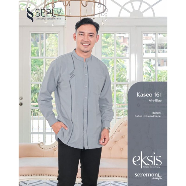 🌸 KASEO 161 AIRY BLUE ( Koko Ayah ) - Koko lengan panjang - Bukaan kancing dengan variasi list hidup - Kerah chiang'i - Saku tempel di dada