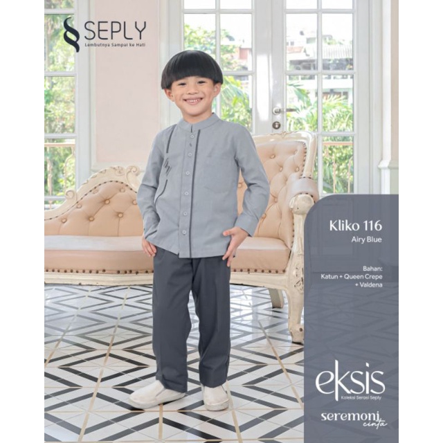 🌸 KLIKO 116 AIRY BLUE ( Koko Anak ) - Koko lengan panjang - Bukaan kancing dengan variasi list hidup - Kerah chiang'i - Saku tempel di dada - Celana panjang dengan karet pinggang