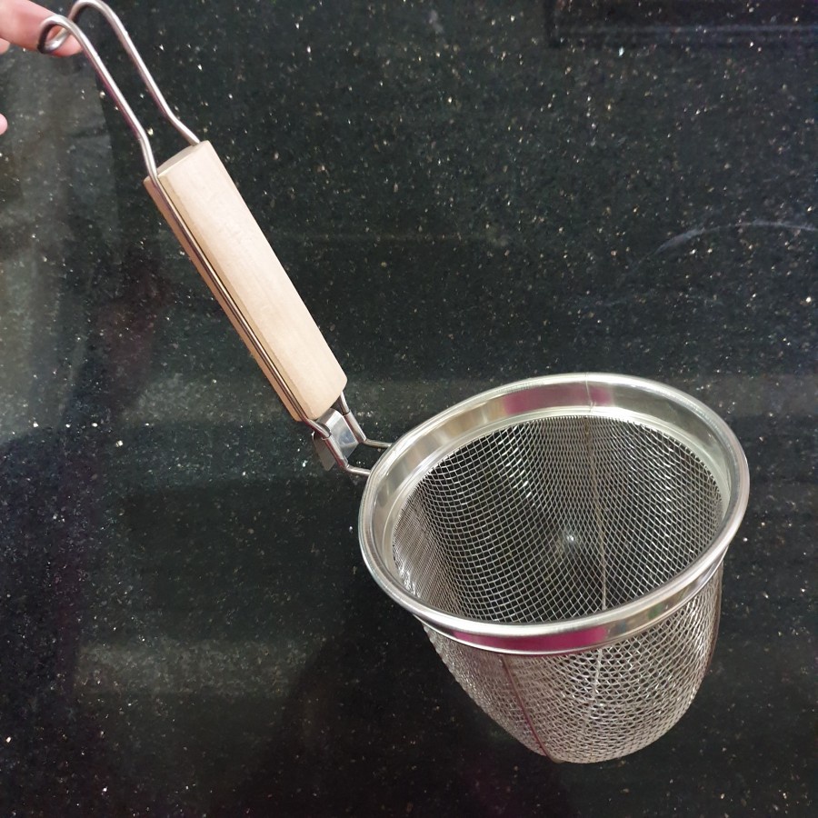- Bahan steinless - Cocok buat mi ayam.mie kocok - material : stainless steel + gagang kayu - serok untuk menyaring mie/ pangsit - Panjag keseluruhan saringan 35cm - Panjang gagang saringan 19 cm - Diameter Saringan serok mie 14 cm - Tinggi serok saringan mie 16 cm - Terdapat pengait di bagian belakang untuk menggantung saringan