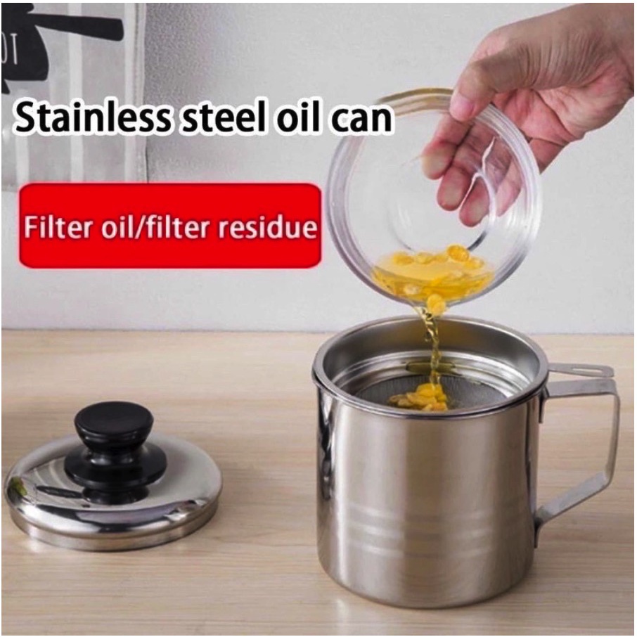 Saringan Minyak Jelantah Sisa Tempat Gorengan Gelas Stainless Steel Oil Pot Bagus Murah
