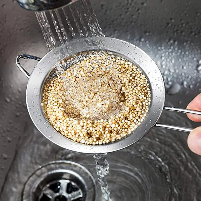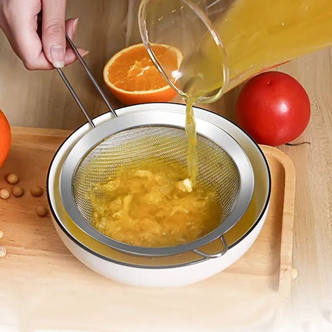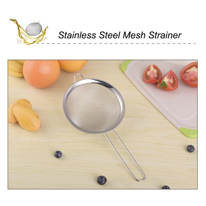 Saringan serbaguna berbahan stainless awet dan tidak mudah robek/koyak. Dapat digunakan untuk memisahkan minuman dari ampas, menyaring tepung, membuat pure, menyaring bubur mpasi bayi untuk membuat tekstur lebih lembut.