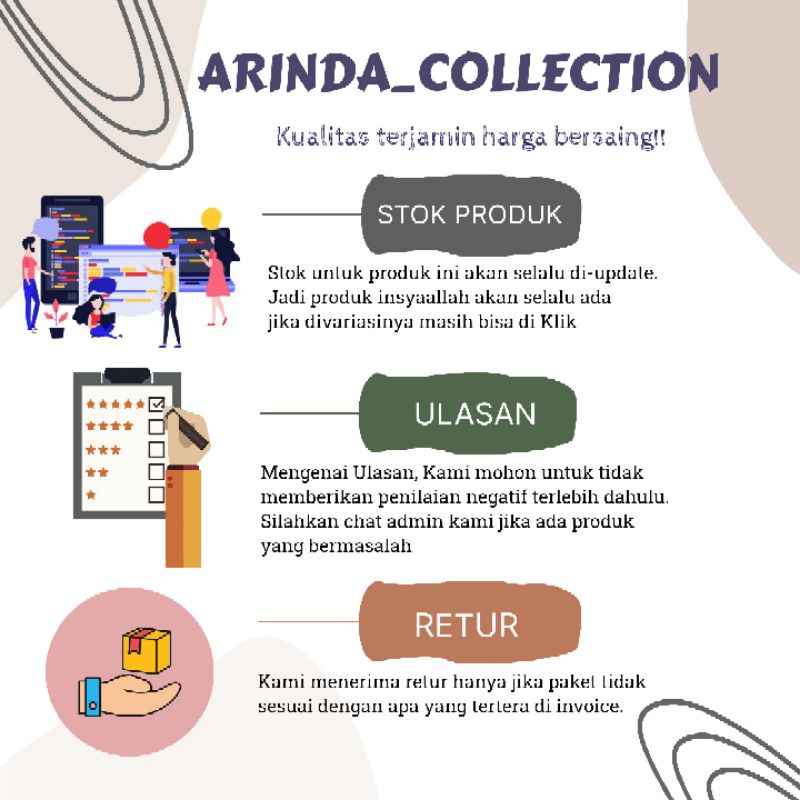 CARA MEMESAN👇👇 📌 Silahkan chat penjual terlebih dahulu sebelum membeli untuk memastikan motif dan stok barang. Hal ini dilakukan agar pembeli tidak kecewa, Karena motifnya sangat banyak. 📌 Sertakan motif cadangan, kmi akn kirim barang sesuai keinginan, jika stok barang habis kami akan segera konfirmasi dan jika tidak ada jawaban dalam 24 jam maka akan kami kirim secara acak. 📌Tidak bisa ubah nama penerima, alamat, nomor hp jika sudah order. Karna aturan dari shopee = resi otomatis