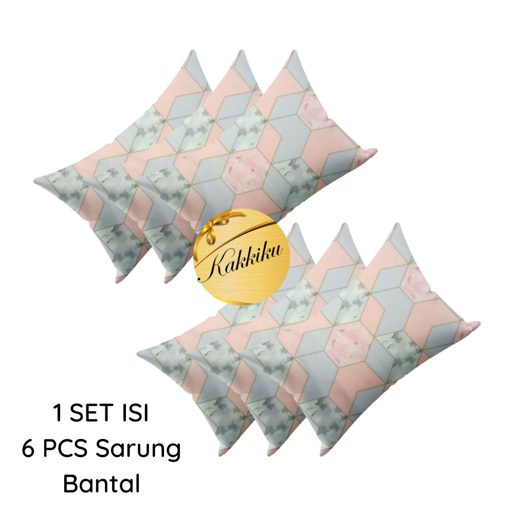 Detail Sarung Bantal Isi 6 pcs Motif Dan Karakter Terlaris Aesthetic Kotak Zigzag Marble