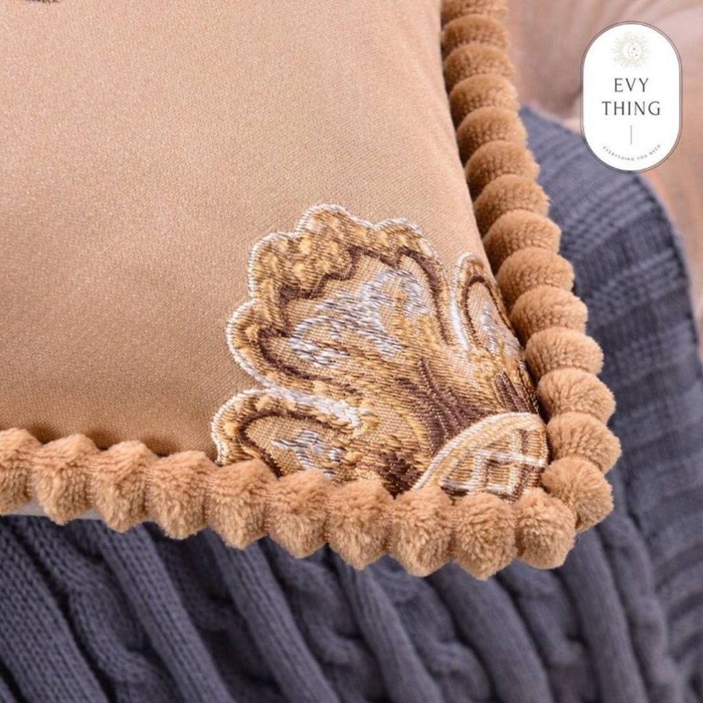 Detail Sarung Bantal Sofa Premium/ Sarung Cushion Sofa Eropa Mewah Sulam Bludru / Bantal Kursi Ruang Tamu/ European Cushion Cover