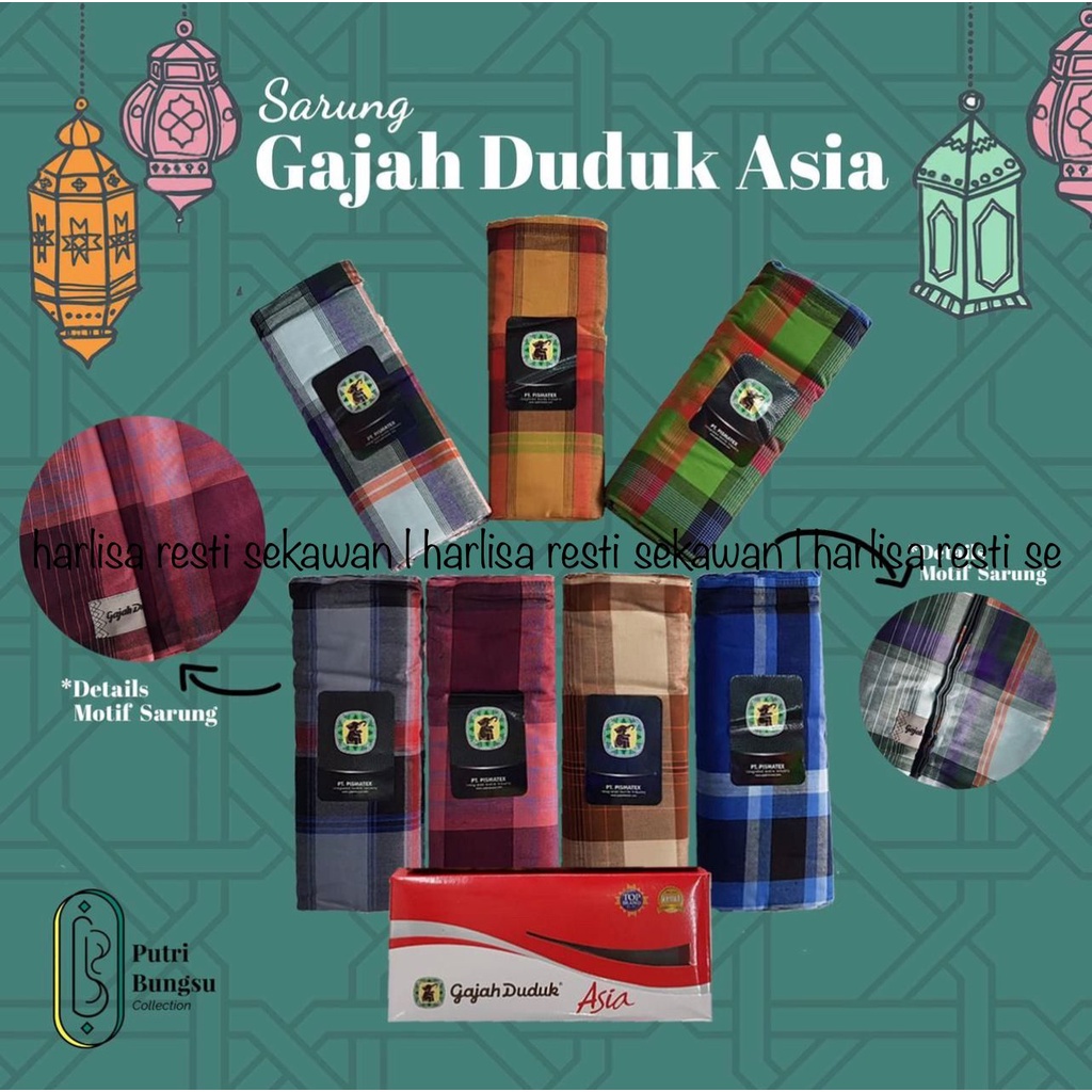 Sarung Gajah Duduk Asia merupakan salah satu varian dari sarung gajah duduk. Sarung Gajah Duduk Asia merupakan salah satu varian dari sarung gajah duduk. Memiliki motif yang menarik dengan aneka warna. Dilengkapi dengan kemasan yang menarik