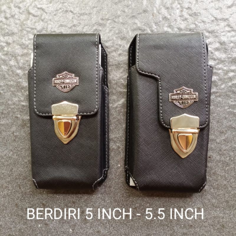 Sarung handphone pinggang single berdiri dan tidur ukuran 5" 5.5" 6" dompet universal