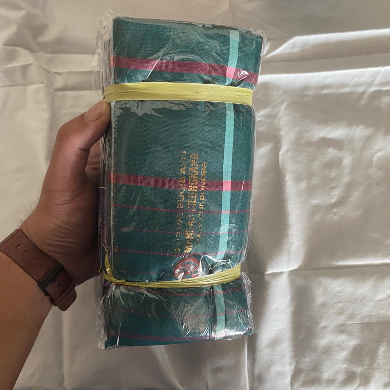 sarung dengan kemasan plastik dilipat kecil cocok untuk dibagikan, tidak memakan banyak tempat, tidak berat, sarung layak pakai bukan barang cacat