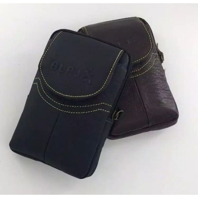 Detail sarung hp model pinggang pria kulit asli hitam cokelat max 6,5 inch