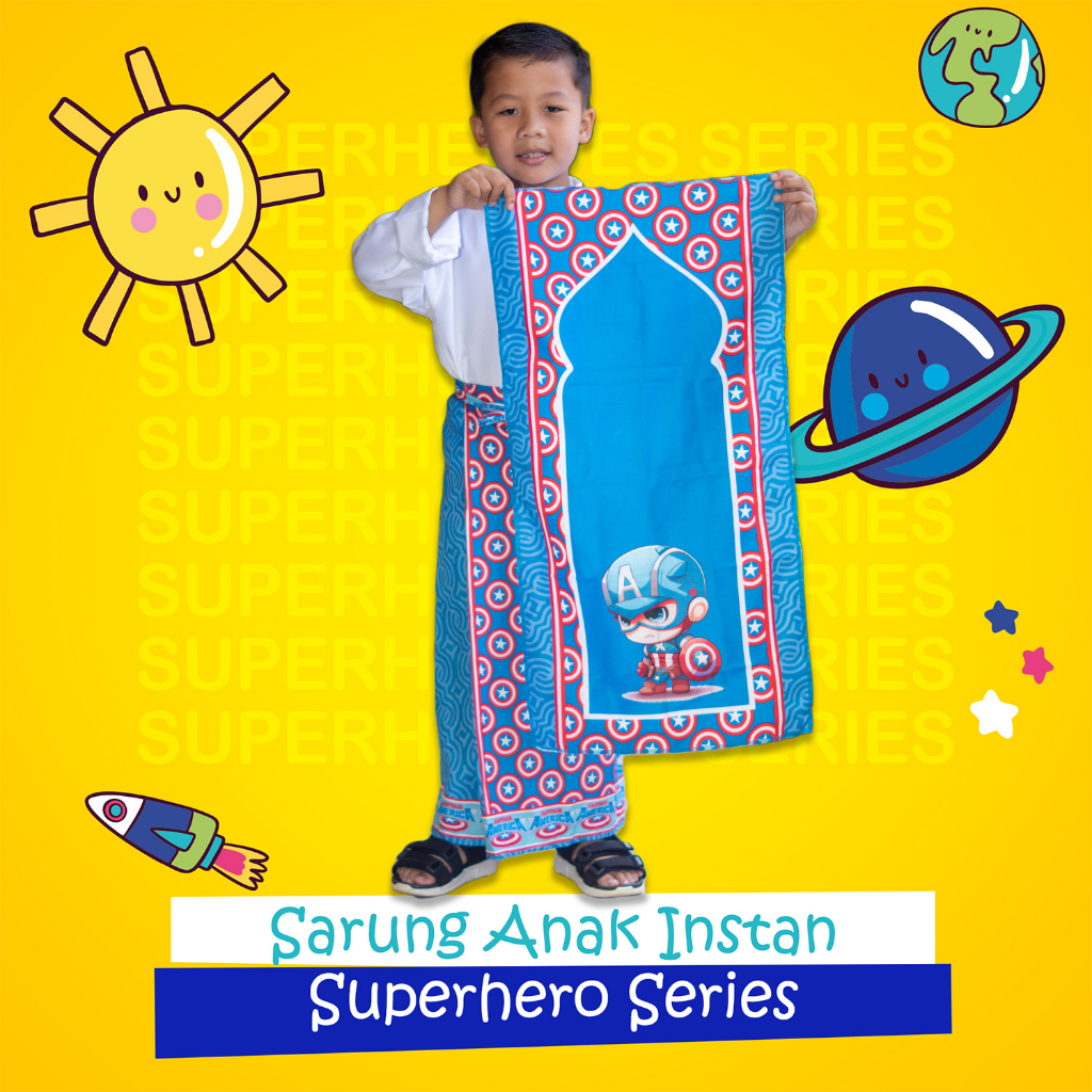 Fashion Muslim > Pakaian Muslim Anak > Pakaian Muslim Anak Laki-Laki > Sarung instan set sajadah anak karakter/Sarung Anak Instan Karakter Unik - Spiderman & Captain America - Sarung Anak Bahan Katun-Sarung Anak Instan, Sarung Sunat, Sarung Anak Laki-Laki Motif Karakter Kartun Usia 2-8thn