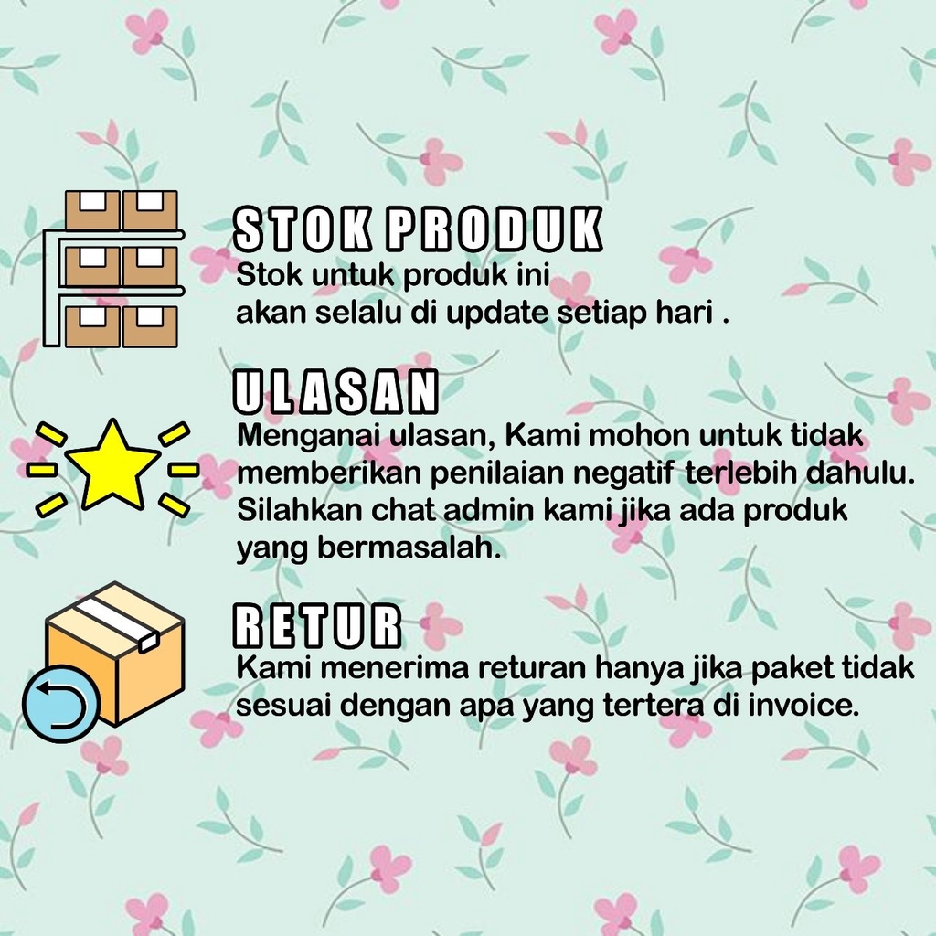#### Noted #### Mohon maaf kepada semua pelanggan, apabila stok yang sudah di checkout ternyata kosong kami akan konfirmasi via chat yah kak dan semisal konfirmasi dari kami belum ada response dari kakak sampai tenggat waktu kirim, mohon maaf sekali kami akan mengirimkan varian acak yah kak. -------------------------------- Dan jangan khawatir kakak sekalian apabila isi paket kurang kirim atau paket rusak, kami akan bertanggung jawab 100% dengan catatan ada video unboxingnya yah kak.