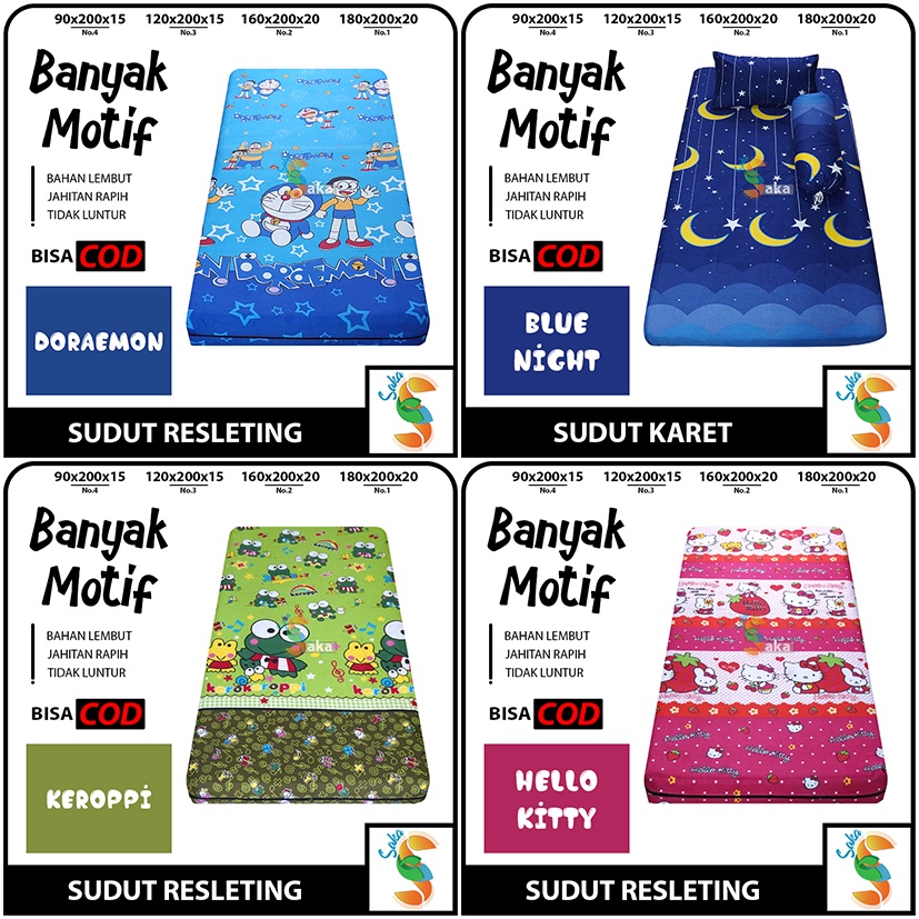 NOTE: Diharap bisa bedakan, sprei resleting yg kami jual itu menutupi semua bagian kasur sedangkan sprei karet bawahnya tidak tertutup sehingga ada perbedaan harga