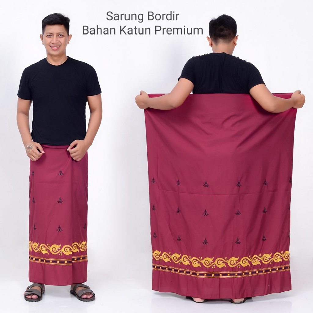 Detail Sarung Katun Bordir Polos Dewasa / Sarung Bordir Aceh Premium / Sarung Wadimor / Sarung Bhs / Sarung Pria
