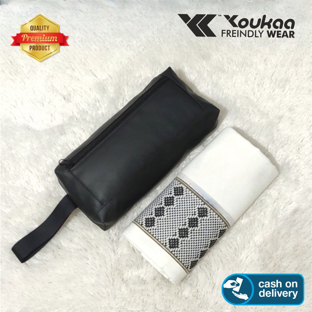 Sarung Sholat Traveling Motif Polos tenun timbul Doby Sisik Naga Kemasan Pouch