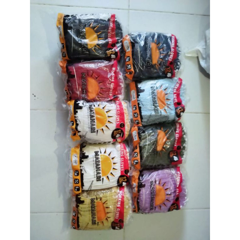 Sarung tangan bintik polkadot Merk matahari, barang asli bukan BS atau cucian atau returan. Harga tertera ialah per lusin atau 12 pasang