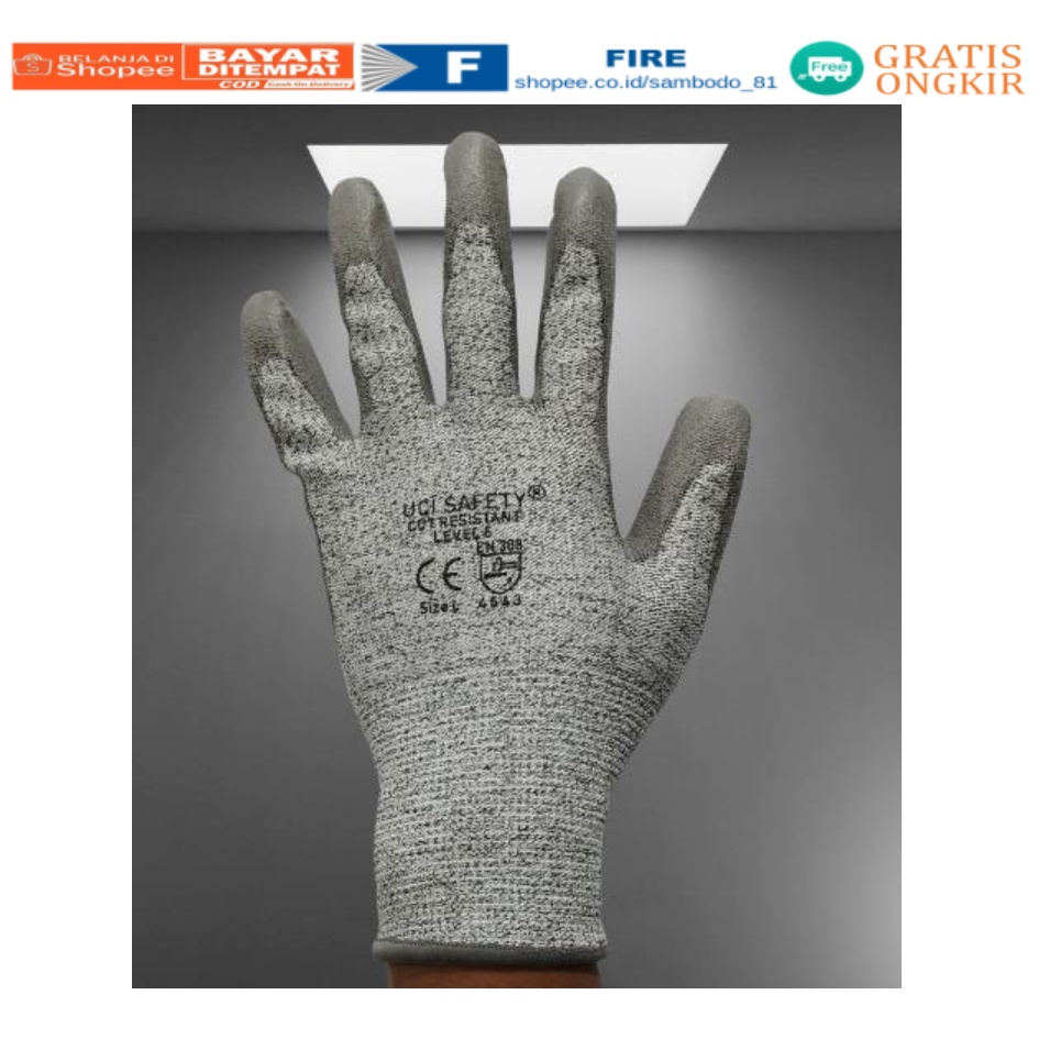 Sarung Tangan Cut Resistant / Guntero Uci Safety Sarung Tangan Safety Anti Pisau Glove Merupakan sarung tangan safety dengan bahan dasar nylon HPPE, yang dilapisi karet polyurethane pada telapak tangan dan ujung jari.