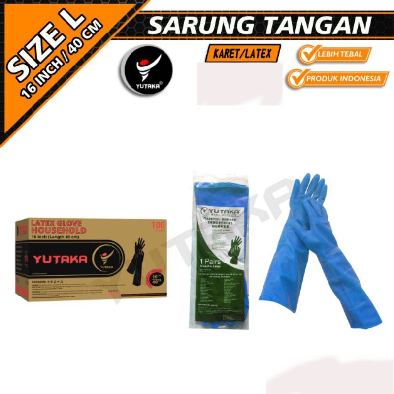 Aplikasi . Rumah tangga . Kebersihan kamar mandi . Otomotif . printing . Food procesing dll . 💯 Latex Sarung tangan karet warna kuning ini berfungsi sebagai pelindung tangan atau melindungi tangan yang terbuat dari bahan karet dan berukuran 16 inch. biasa di gunakan untuk melindungi tangan dari kotoran saat bekerja atau sebagai kebutuhan dokter, sarung tangan karet Yutaka bisa juga digunakan sebagai Sarung Tangan