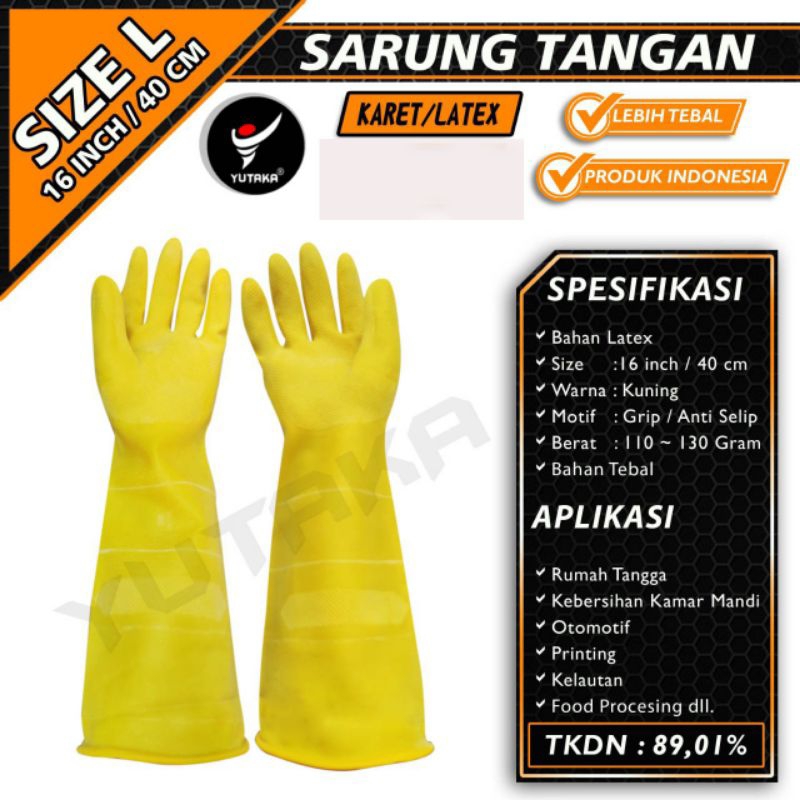 Sarung Tangan Karet Yutaka 16 Inch Anti Selip || Sarung Tangan Karet Yutaka Kuning Tebal Nyaman
