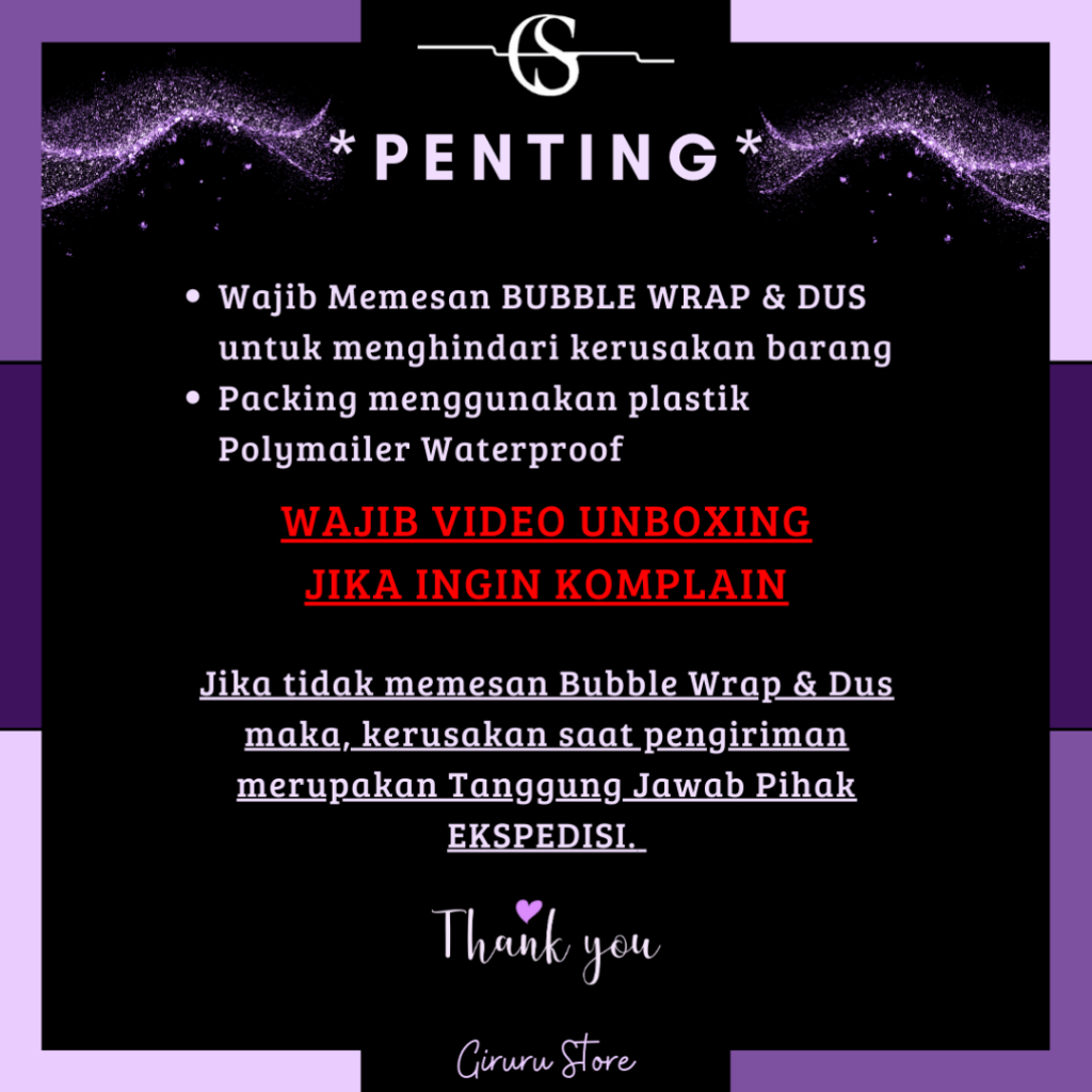NOTE π’π’π’π’π’π’π’π’π’π’π’π’π’ PACKING HANYA MENGGUNAKAN PLASTIK POLYMAILER, JIKA INGIN AMAN SAAT PENGIRIMAN, BISA TAMBAHKAN BUBBLE WRAP DAN KARDUS YA KAK. JIKA MENGALAMI KERUSAKAN MAKA DI LUAR TANGGUNG JAWAB KAMI. UNTUK KOMPLAIN HARUS DISERTAI VIDEO UNBOXING (SAAT BARANG BARU DATANG), KALAU TIDAK ADA MAKA TIDAK AKAN KAMI LAYANIπ