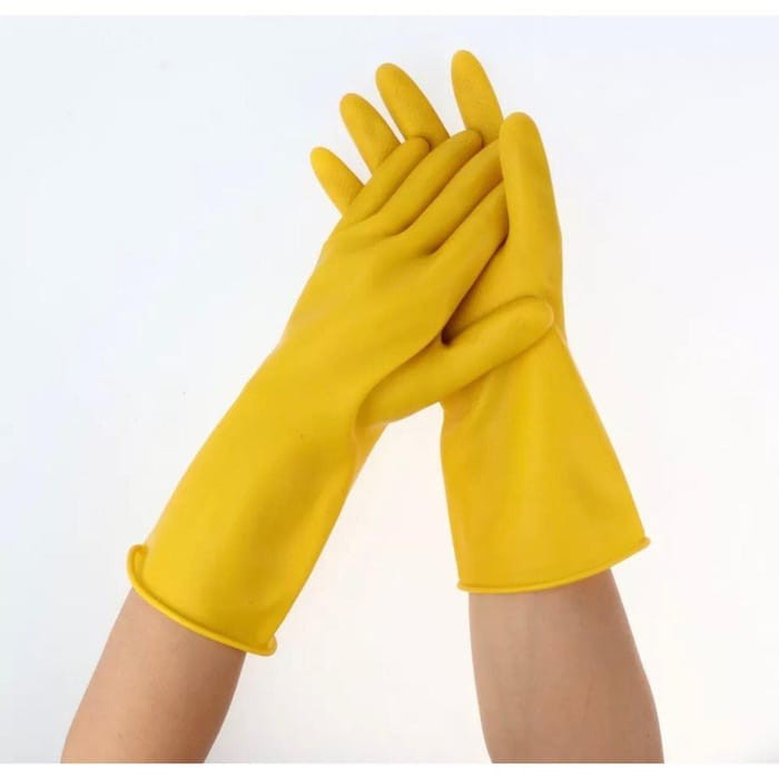 Sarung tangan karet latex berguna untuk melindungi tangan Anda dari pekerjaan kasar/membersihkan. Sarung tangan ini mudah dicuci dan juga bisa digunakan berkali-kali.