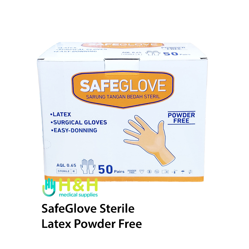Sarung Tangan Latex Sterile Powder Free / Safe Glove Surgical Powder Free / Sarung Tangan Steril No Powder