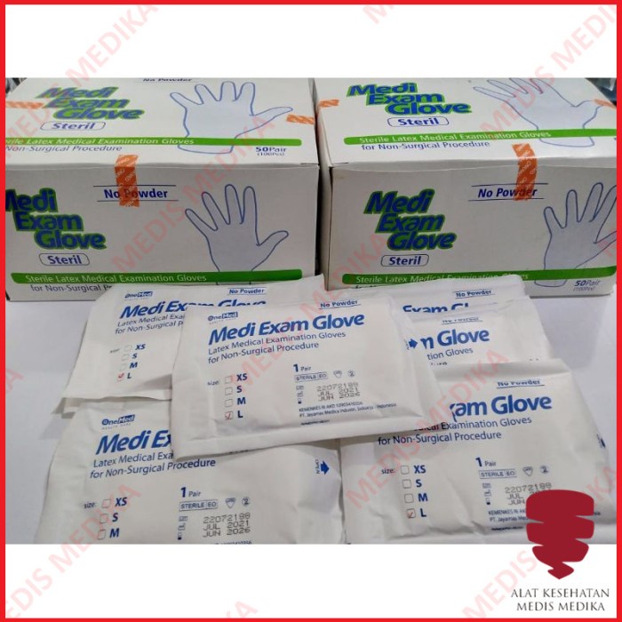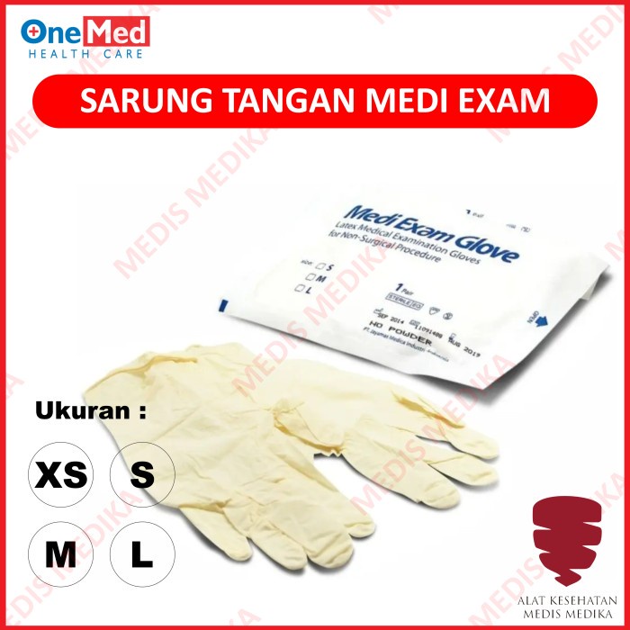 Kesehatan > Obat-obatan & Alat Kesehatan > Sarung Tangan & Masker Medis > Sarung Tangan Medi Exam Sterile Ukuran XS S M L Onemed Handscoon Handscon Handskun Karet Latex Surgery Glove Steril Size Large Medium Small Extra