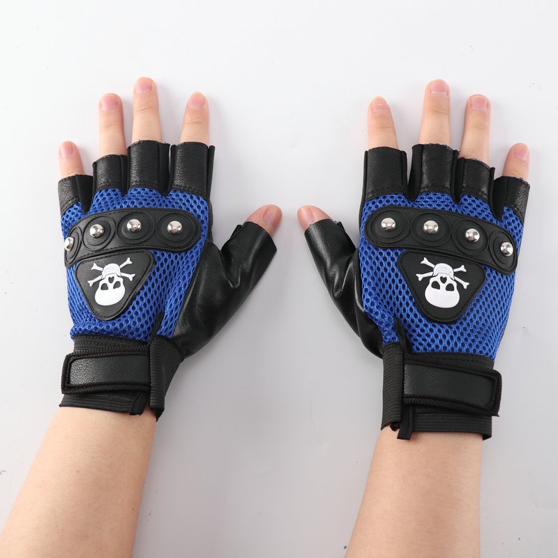 Detail Sarung Tangan Motor Pria Setengah Jari Half Finger Motif Tengkorak Trail Sporty Fitness Gloves Fashion Riding HNF