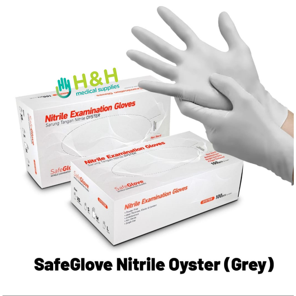 Sarung Tangan Nitrile Safe Glove Oyster Abu Abu / Sarung Tangan Nitrile Examination Glove Safe Glove Oyster Abu Abu / Handscoon Nitrile Nitril Safe Glove Oyster Abu Abu / Sarung Tangan Medis / Sarung Tangan Kesehatan / Sarung Tangan Nitrile
