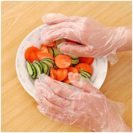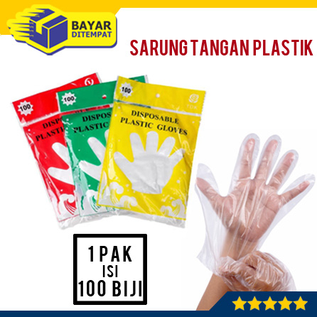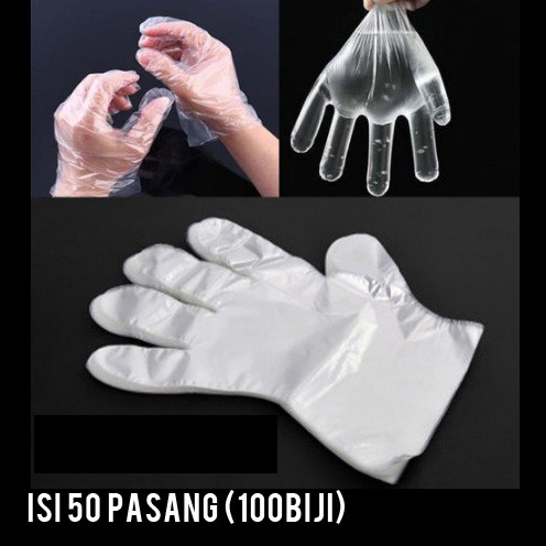 Sarung tangan plastik steril sekali pakai yang terbuat dari bahan polyethylene yang tidak beracun dan anti alergi. Sarung tangan ini berfungsi melindungi tangan Anda dari bahan-bahan kimia selama kegiatan mencuci, atau menjaga makanan tetap bersih bila Anda mempersiapkan makanan. Selain itu, sarung tangan ini sesuai dipergunakan juga di lingkungan rumah sakit, salon, atau rumah makan.