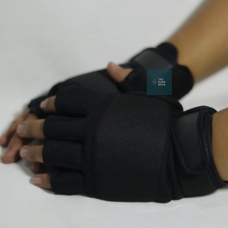 Sarung Tangan Polos Setengah Jari Hitam Sepeda Motor Pendek Premium Montor Jempol Pria Anak Wanita Original Ojol Buntung Glove Half Finger Touch Screen