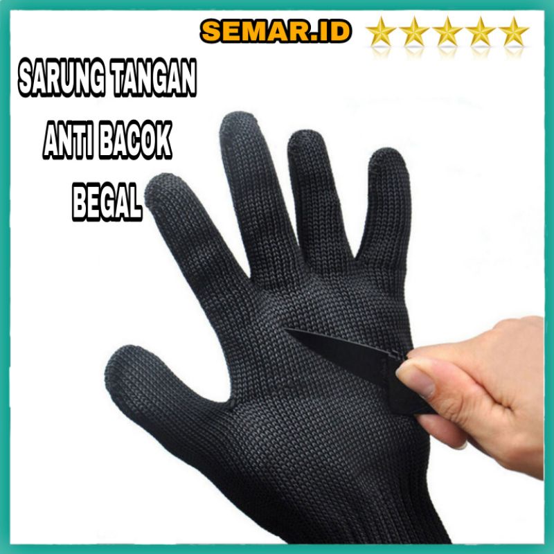 Sarung tangan dengan material khusus, membuat sarung tangan ini mampu melindungi tangan Anda dari goresan benda tajam seperti pisau. Dengan menggunakan sarung tangan ini, tangan Anda dapat terlindungi dan tercegah dari goresan pisau saat Anda menggunakannya. Sangat cocok digunakan pada saat melakukan kegiatan memotong menggunakan pisau.