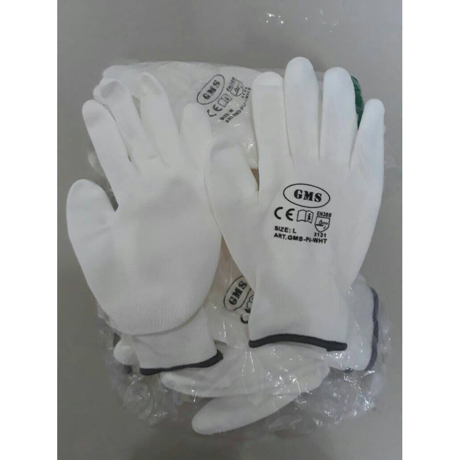 Sarung tangan PU palm fit white sebanyak 1 pasang. Size : S,M,L