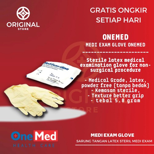 > Sarung Tangan Medi Exam Glove Sterile OneMed 1 Pasang - 1PCS ECERAN