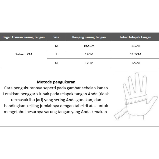 - nyaman di pake dan cocok segala cuaca - hangat ketika di pakai - tidak keras - lentur - Adjustable (lihat digambar) - Protector Plastik Solid melindungi jari - nyaman digunakan, tidak licin.
