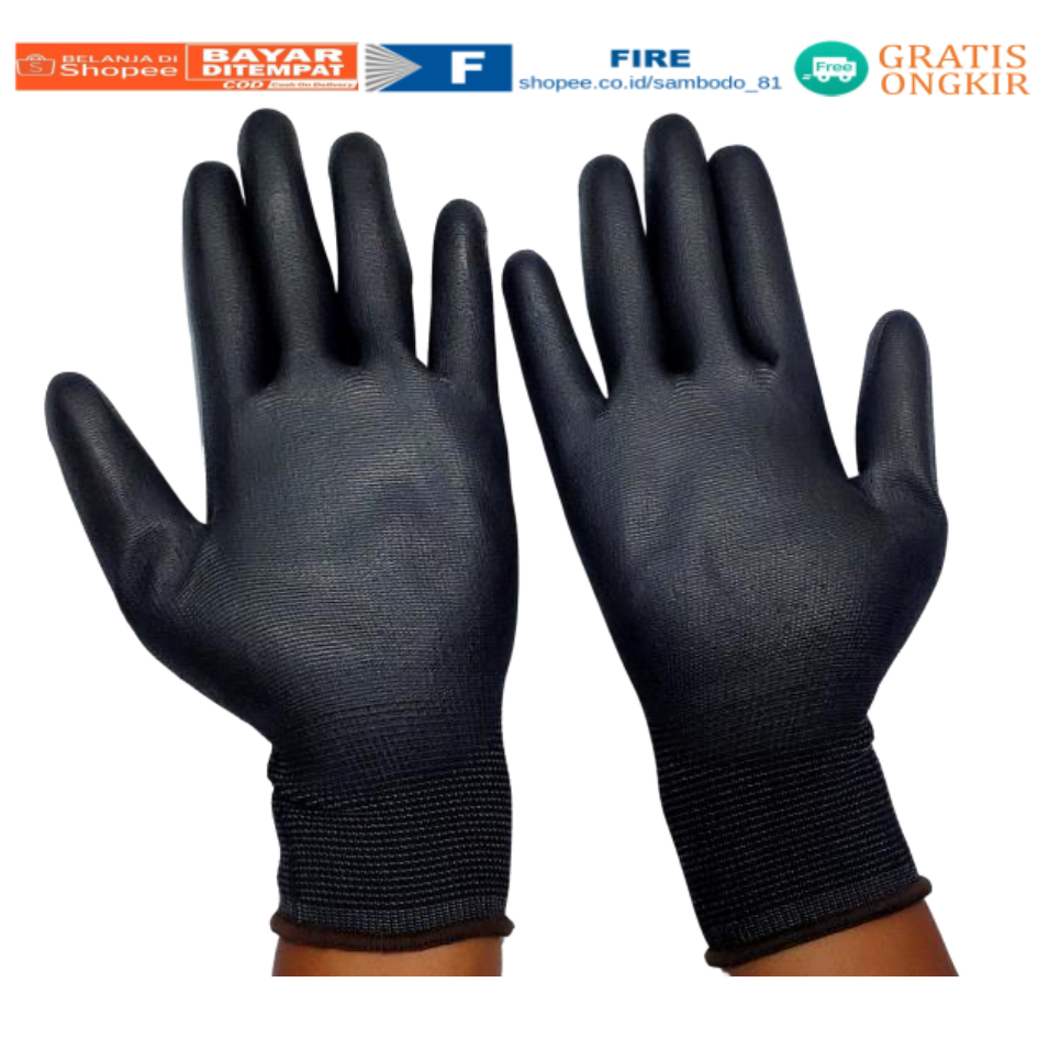 Sarung Tangan Tukang Telapak Tangan dilapisi karet Bahan Nylon Polyester Elektronik Assembly Static Multi Purpose Polyurethane Kerja Palmfit Safety Gloves Security Dilapisi Karet Industri Pabrik Uci Safety Motor Bengkel otomotif Merupakan sarung tangan material warna hitam nylon yang dilapisi oleh Polyurethane dibagian jari dan di telapak tangan, Pure Nylon 100% Material Nylon dikenal memiliki elastisitas yang baik, Sarung tangan yang cocok dengan tangan dan dapat melindungi tangan sehingga meningkatkan keamanan dan keselamatan kerja