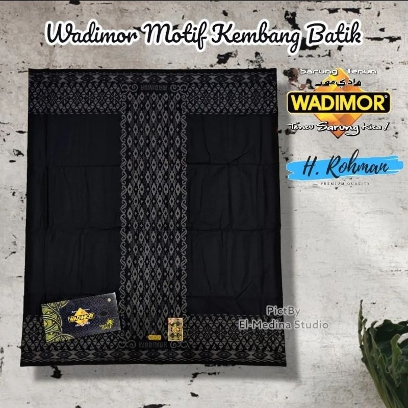 Warna dasar Hitam dengan Batik kembang. Tentang Sarung Wadimor: Dibuat dari benang pilihan berkualitas produksi sendiri dan diproses menggunakan mesin berteknologi canggih. Diproduksi melalui seleksi kualitas yang ketat, menghasilkan kualitas sarung yang cemerlang, tidak luntur dan tidak kusam.