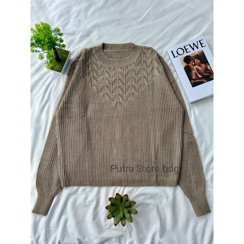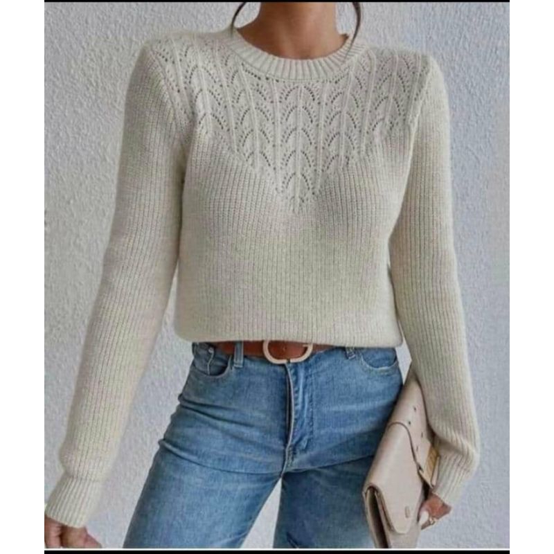 SASA SWEATER CROP RAJUT MOTIF DAUN