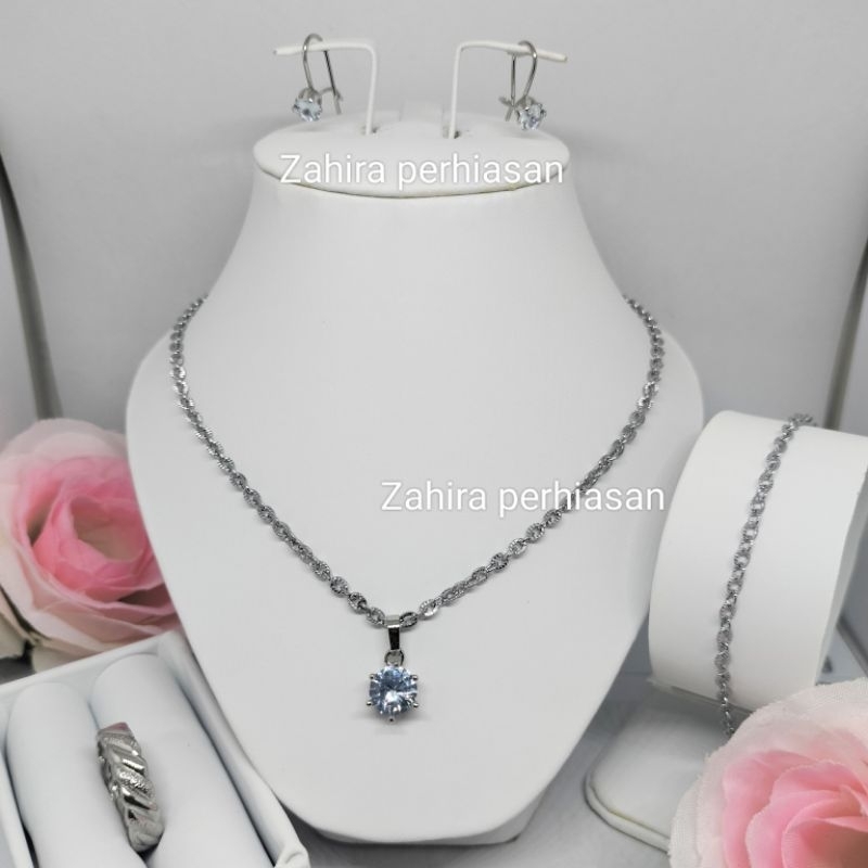 Your browser does not support the video tag.Video perkenalan produk satu set perhiasan wanita mata satu silver titanium. Sumber: Shopee.
