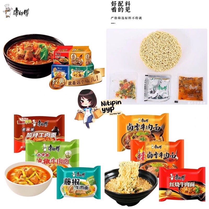 â˘â˘ [SATUAN] Mie Instan KANGSHIFU - Master Kong Kang Shi Fu Instant Noodle - Mr Kang Kong Shi Fu Mie Instant China Siap Saji (100-104gr) â READYSTOCK đĽ Made 100% in China đ¨đł âźď¸ Kemasan Siap Saji, Tinggal Dikonsumsi đ đ Masa Simpan 6 Bulan â EXP DATE UPDATE TRUS & SELALU AMAN âźď¸đđť â Tersedia dalam 9ď¸âŁ varian : 1ď¸âŁ. Braised Beef 2ď¸âŁ. Spicy Beef 3ď¸âŁ. Sour Spicy Beef 4ď¸âŁ. Rattan Pepper Beef 5ď¸âŁ. Chicken Mushroom 6ď¸âŁ. Stewed Soy Beef 7ď¸âŁ. Laotan Pickles Beef 8ď¸âŁ. Seafood Shrimp 9ď¸âŁ. Scallion Pork Ribs â NON HALAL â đ HARGA UNTUK 1 BUNGKUS â Berat 1 bungkus 101gr sampai 104gr (tergantung variannya). Mie Instant KANGSHIFU ini menjadi salah satu favorit orang orang China ataupun Indonesia lohhh, dari dulu best seller banget deh mie satu ini. Wajib banget loh kalian coba, karena beda banget sm mie instant indom*e dan lain-lain đđ. â Cara penyajian: 1. masukan mie ke wadah air yang sudah mendidih 2. lalu masukan semua bumbu yang ada. boleh menambah sayuran. 3. siap di makan setelah diaduk â #cukupnitipinyyp #nitipinyyp #masterkong #kangshifu #masterkonginstantnoodle #kangshifuinstantnoodle #instantnoodlechina #miekangshifu
