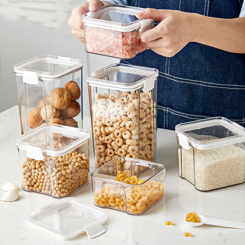 Perlengkapan Rumah > Peralatan Dapur > Tempat Penyimpanan Makanan > (SATUAN) Toples Snack Akrilik Tutup Putih Penyimpanan Makanan Sebaguna Putih Kedap Udara Tempat Penyimpanan Cereal Toples Kotak Bening Kontainer Makanan