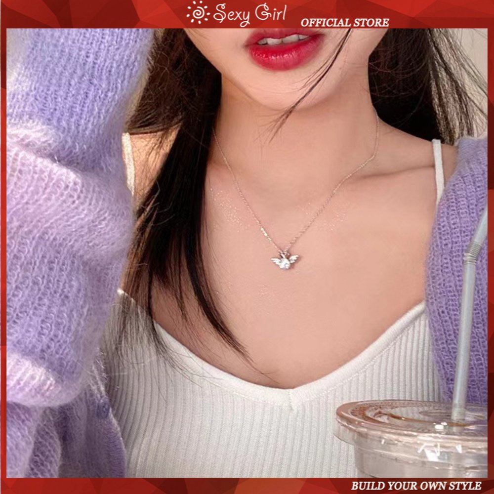 Detail Sayap Malaikat Flash Berlian Mahkota Kalung Perempuan Niche Cahaya Mewah Temperamen Manis Keren Rempah Gadis Jantung Klavikula Rantai Perhiasan Gadis Seksi