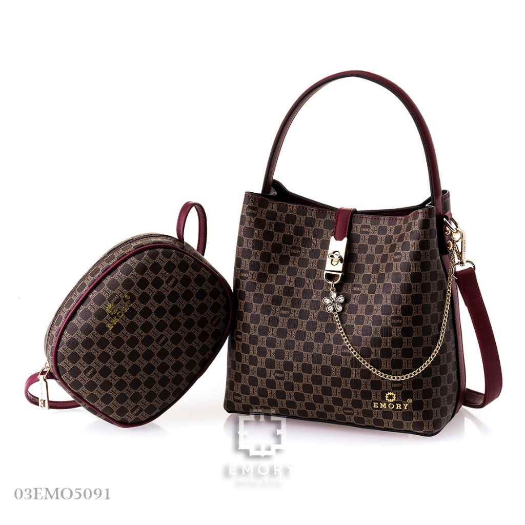 E M O R Y Azarra.(bdg) Series 03EMO5091. Measurements Base 22 CM. Height 22 CM . Mini Bag 17 x 14 CM. Weights 1.288 KG. Material Faux Togo leather in Monogram. ORIGINAL BRAND.